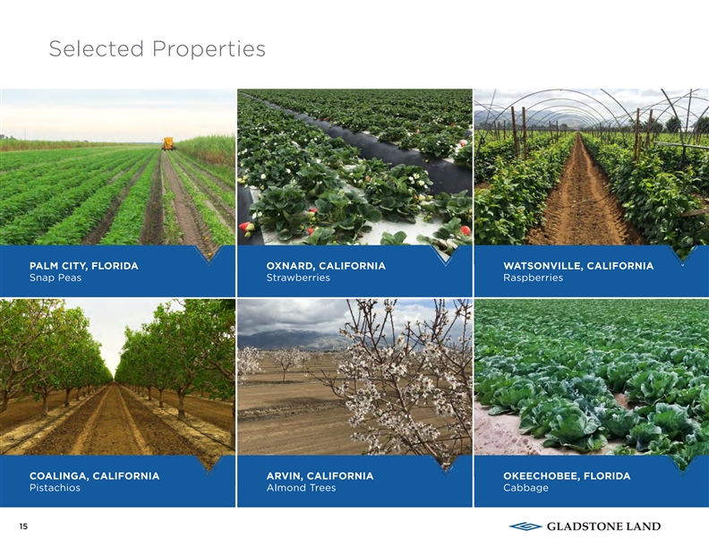 Selected Properties PALM CITY, FLORIDA OXNARD, CALIFORNIA WATSONVILLE, CALIFORNIA Snap Peas Strawberries Raspberries COALINGA, CALIFORNIA ARVIN, CALIFORNIA OKEECHOBEE, FLORIDA Pistachios Almond Trees Cabbage 15Selected Properties PALM CITY, FLORIDA OXNARD, CALIFORNIA WATSONVILLE, CALIFORNIA Snap Peas Strawberries Raspberries COALINGA, CALIFORNIA ARVIN, CALIFORNIA OKEECHOBEE, FLORIDA Pistachios Almond Trees Cabbage 15