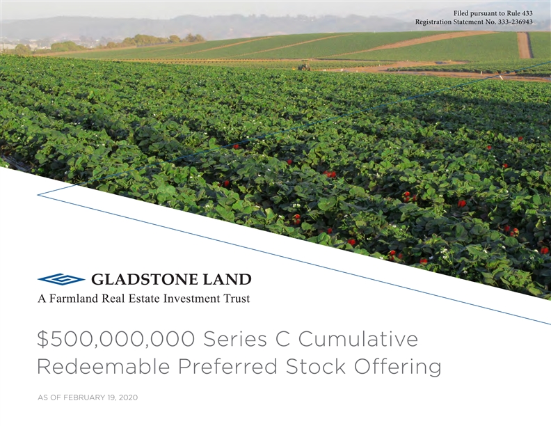 Filed pursuant to Rule 433 Registration Statement No. 333-236943 A Farmland Real Estate Investment Trust $500,000,000 Series C Cumulative Redeemable Preferred Stock Oering AS OF FEBRUARY 19, 2020Filed pursuant to Rule 433 Registration Statement No. 333-236943 A Farmland Real Estate Investment Trust $500,000,000 Series C Cumulative Redeemable Preferred Stock Oering AS OF FEBRUARY 19, 2020